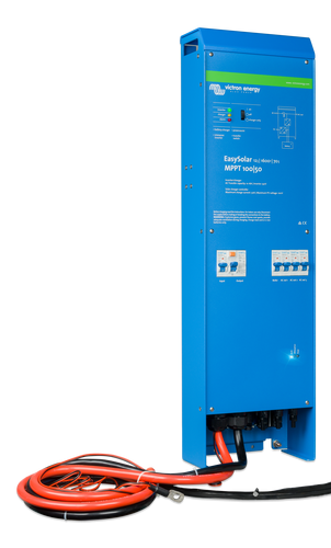 EasySolar este un echipament ce combina un controler solar MPPT si un invertor / incarcator si distributie de curent alternativ intr-o singura carcasa. Produsul este usor de instalat, necesitand un minim de cabluri. Regulatorul solar de incarcare Blue Solar MPPT 100/50 permite conectarea pana la trei siruri de panouri fotovoltaice. Acestea pot fi conectate in seturi la conectori MC4 (PV-ST01).